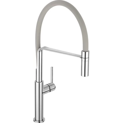 Gästen zeigst du als erstes am liebsten deine neue Küchenarmatur? Die baliv Küchenarmatur KI-1331 ist ein echter Hingucker in deinem Wohn(t)raum. Der hohe Auslauf in grau-matter Optik ist ein toller Kontrast zur Oberfläche der querverlaufenden Verbindung von Auslauf und Brause. Seitlich befindet sich der Hebel. Eine gerade Verbindung von Auslauf und Brause sorgt für eine extra Portion Stil. Das Spülbecken reinigst du ganz einfach mit dem Auslauf der Armatur. Der flexible Schlauch lässt sich aus der Verankerung lösen. Mit einem Spielraum von 360° erleichtert er dir die Reinigung ungemein. So geht dir das Reinigen des Spülbeckens oder der Abwasch von großen Gefäßen leicht von der Hand.