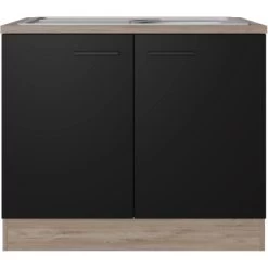 Flex-Well Exclusiv Spülenunterschrank Capri 100 Cm Schwarz Matt-Endgrain Oak