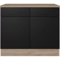 Flex-Well Exclusiv Unterschrank Capri 100 Cm Schwarz Matt-Endgrain Oak