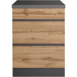 Held Möbel Küchenunterschrank Turin 60 Cm 1 Tür 1 Schublade Wotaneiche/Graphit