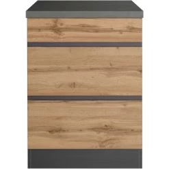 Held Möbel Küchenunterschrank Turin 60 Cm Mit Auszügen Graphit/Wotaneiche