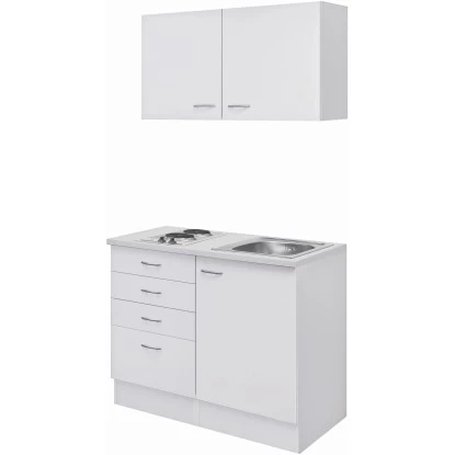 Ob erste Wohnung, Single-Haushalt, Ferienwohnung oder im Büro – diese kleine Küche von 100 cm Breite überzeugt durch ihr Design und die vielfältigen Funktionen. Die Türen der Schränke sind sowohl für den links- als auch rechtsseitigen Aufbau vorbereitet, was Ihnen ein Höchstmaß an Flexibilität bei der Montage bietet. Die hochwertigen und pflegeleichten Kunststofffronten und die stabile Bauweise der Schrankkörper garantieren Ihnen lange Freude an Ihrer Küche.
