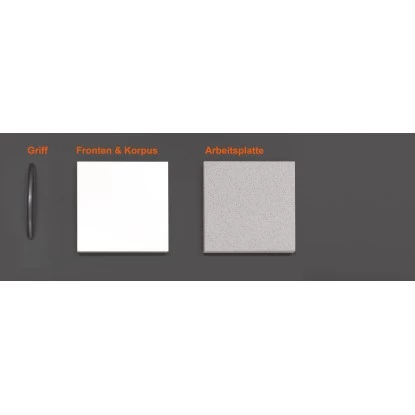 Lieferumfang: Front- und Korpusmuster 16 mm stark, Arbeitsplattenmuster 0,8 mm stark, moderner Bügelgriff