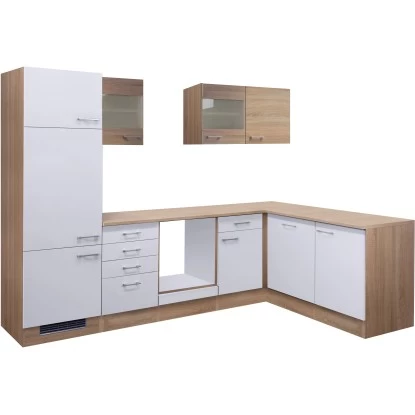 Sie sind auf der Suche nach einer neuen Küche? Sie mögen keine Möbel von der Stange und haben Spaß daran, die Dinge selber in die Hand zu nehmen? Die vorkonfigurierten Küchenzeilen überzeugen durch ihr Design und die vielfältigen Funktionen. Die Türen der Schränke sind sowohl für den links- als auch rechtsseitigen Aufbau vorbereitet, was Ihnen ein Höchstmaß an Flexibilität bei der Montage bietet. Die hochwertigen und pflegeleichten Kunststofffronten und die stabile Bauweise der Schrankkörper garantieren Ihnen lange Freude an Ihrer Küche. Eine Arbeitsplatte im passenden Design gehört bei dieser Küchenzeile mit dazu.