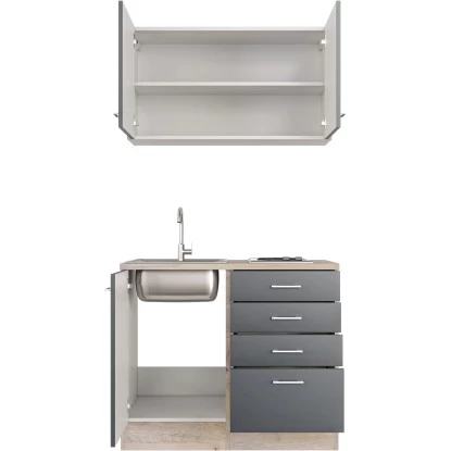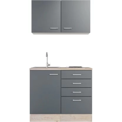 Die 100 cm breite Single-Küchenzeile besteht aus (H x B x T):