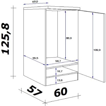 Maße: (B x H x T) 60 x 123 x 60 cm