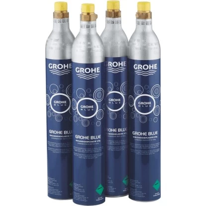Das Grohe Blue Starter-Set ist bestehend aus vier CO²-Flaschen zur Anreicherung von Trinkwasser von höchster Reinheit aus Ihrer Grohe Blue Armatur. Eine Flasche verfügt über eine Kapazität von bis zu 60 Liter sprudelndes Wasser.