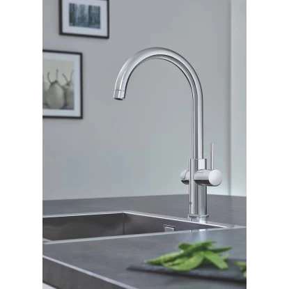 Die Grohe Küchenarmatur mit Boiler Red Duo verfügt über eine hochwertige Grohe StarLight® Oberfläche in Chrom. Die StarLight Oberfläche sieht nicht nur besonders gut aus, sondern ist auch sehr resistent gegenüber Kratzern und von daher sehr pflegeleicht. Mit dem zugehörigen Boiler steht Ihnen jederzeit kochend heißes Wasser direkt aus der Leitung zur Verfügung.