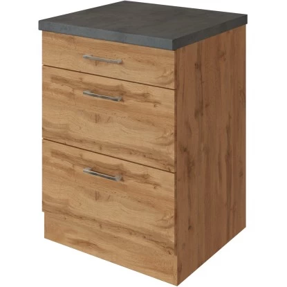 Die Küchenserie Sorrento besticht durch ihre 4 absolut trendstarken Dekorkombinationen, in denen immer das ausdrucksstarke Eichedekor eine entscheidende Rolle spielt. Durch eine Vielzahl an Zeilen- und Winkelkombinationen, die außerdem durch eine große Auswahl an Ergänzungsmöbeln komplettiert werden, ergibt sich ein breites Spektrum an Einrichtungsmöglichkeiten. Möchten Sie Ihren Backofen lieber autark in einem Hochschrank untergebracht haben? Benötigen Sie einen großzügigen Kühlschrank mit integriertem Gefrierschrank? Lagern Sie Ihre Vorräte gern in Auszügen und Apothekerschränken? Alle Schränke sind flexibel aufzustellen und die Türen sind wahlweise rechts oder links montierbar. Entscheiden Sie selbst- hier bleiben keine Wünsche offen.