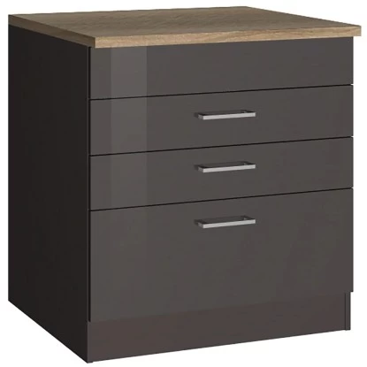 Der Kochfeldumbauschrank von Held Möbel aus der Serie Mailand zeichnet sich durch seine hochglänzende MDF-Front, attraktivem Metallgriff sowie der pflegeleichten Korpus-Kunststoffoberfläche aus. Der Schrank innen ist in Weiß gehalten. Zusätzlich finden sich hier zwei Schubkästen und ein Auszug auf leichtgängigen Metallschienen und eine 28 mm starke Arbeitsplatte im Eiche Dekor für den variablen Einsatz eines Kochfelds.