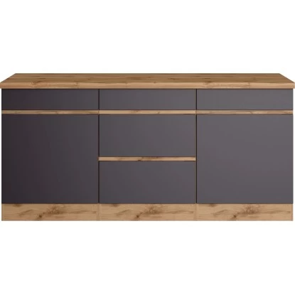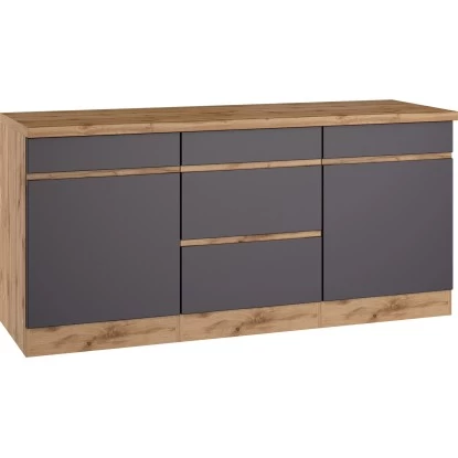 Mit dem Unterschrank Turin von Held Möbel mit hochwertigen MDF-Fronten können Sie ihre Küchenzeile perfekt ergänzen. Hinter den Drehtüren befinden sich je zwei Ablagefächer ergänzt werden diese durch zwei Auszüge und drei Schubkastenelemente. Optisch begeistert der Unterschrank durch die klaren Linien sowie die zweifarbige Gestaltung. Da der Schrank in zwei Farbkombinationen verfügbar ist, können Sie die Küche im Mix-and-Match Stil einrichten.