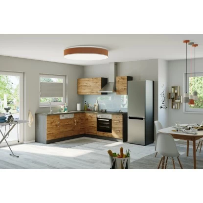 Die Küchenserie Sorrento besticht durch ihre 4 absolut trendstarken Dekorkombinationen, in denen immer das ausdrucksstarke Eichedekor eine entscheidende Rolle spielt. Durch eine Vielzahl an Zeilen- und Winkelkombinationen, die außerdem durch eine große Auswahl an Ergänzungsmöbeln komplettiert werden, ergibt sich ein breites Spektrum an Einrichtungsmöglichkeiten. Möchten Sie Ihren Backofen lieber autark in einem Hochschrank untergebracht haben? Benötigen Sie einen großzügigen Kühlschrank mit integriertem Gefrierschrank? Lagern Sie Ihre Vorräte gern in Auszügen und Apothekerschränken? Alle Schränke sind flexibel aufzustellen und die Türen sind wahlweise rechts oder links montierbar. Entscheiden Sie selbst- hier bleiben keine Wünsche offen.