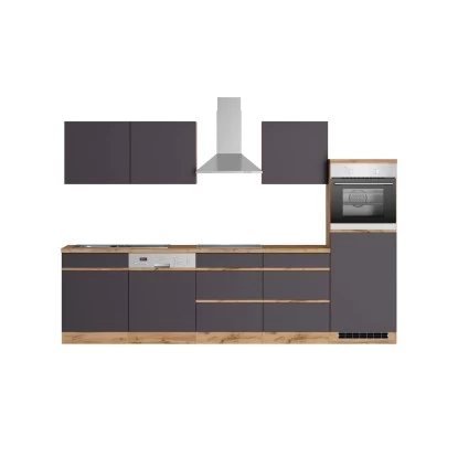 Die Küchenzeile Turin von Held Möbel mit hochwertigen MDF-Fronten begeistert optisch durch die klaren Linien sowie die zweifarbige Gestaltung. Da die Schränke in zwei Farbkombinationen verfügbar sind, können Sie die Küche im Mix-and-Match Stil erweitern. Zusätzliche Akzente werden durch die 38 mm starke Arbeitsplatte im Beton Dekor gesetzt.