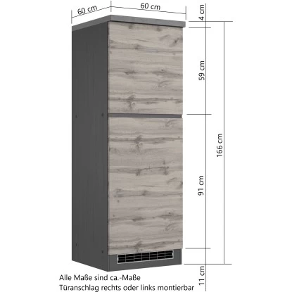 Mit dem Kühlschrankumbauschrank Turin von Held Möbel mit hochwertigen MDF-Fronten können Sie ihre Küchenzeile perfekt ergänzen. Optisch begeistert der Schrank durch die klaren Linien sowie die zweifarbige Gestaltung. Da der Schrank in zwei Farbkombinationen verfügbar ist, können Sie die Küche im Mix-and-Match Stil einrichten. Ein zusätzliches Staufach für haltbare Lebensmittel und andere Küchenutensilien findet sich über der Kühlschrank-Nische.