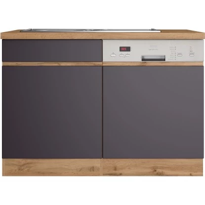 Mit dem Spülenunterschrank Turin von Held Möbel mit hochwertigen MDF-Fronten können Sie ihre Küchenzeile perfekt ergänzen. Hinter der Drehtür befindet sich ein Ablagefach zur individuellen Nutzung. Optisch begeistert der Spülenunterschrank durch die klaren Linien sowie die zweifarbige Gestaltung. Da der Schrank in zwei Farbkombinationen verfügbar ist, können Sie die Küche im Mix-and-Match Stil einrichten. Eine 28 mm starke Arbeitsplatte in Eiche Dekor ohne Ausschnitt für einen variablen Einsatz der Spüle ist inklusive.