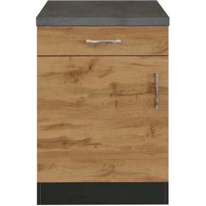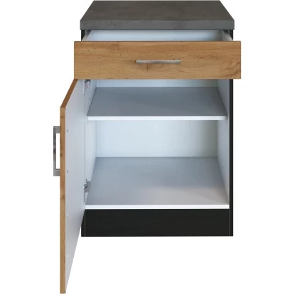 Der Held Möbel Unterschrank Sorrento misst B x H x T: 50 cm x 85 cm x 60 cm, 1 Tür, 1 Schubkasten. 1 Einlegeboden, Metallgriff