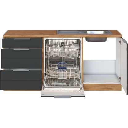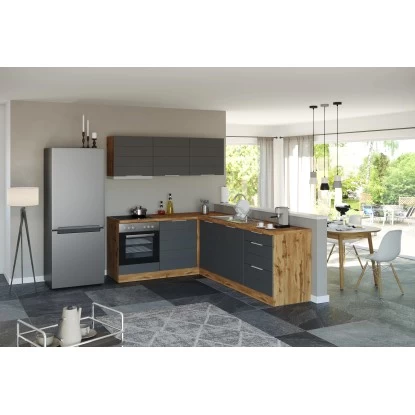 Held Möbel Winkelküche 240 Cm – 180 Cm Matt Grau-Wotaneiche