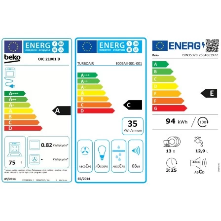 Energieverbrauch in kWh [pro 100 Betriebszyklen] im eco-Programm bei Kaltwasseranschluss: 94 kWh