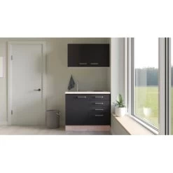 Flex-Well Exclusiv Miniküche Capri 100 Cm Schwarz Matt-Endgrain Oak