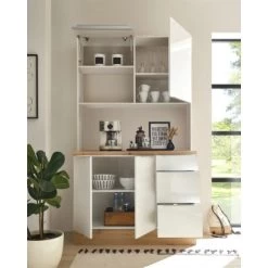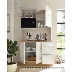 Respekta Buffet Mit Mikrowelle Zu Küchenzeile Marleen Artisan-Eiche Weiß Hochgl.