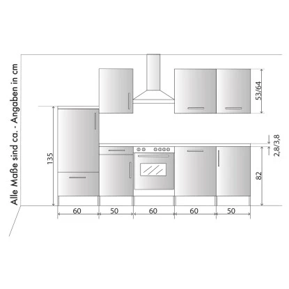 Die Küchenzeile Mara besteht aus (B x H x T):