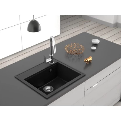 Gefertigt aus einem hochwertigen Granitverbundwerkstoff, zeichnet sich die Einbauspüle durch eine natürliche Granit-Optik aus. Mit ihrer Farbausführung in Schwarz ist sie eine schöne Ergänzung für eine Natursteinarbeitsfläche. Dazu besticht das verwendete Material mit pflegeleichten Eigenschaften und lässt sich mühelos reinigen. Es ist wichtig, dass bei der Reinigung von Granitspülen keine chemischen Reinigungsmittel mit ätzenden Eigenschaften, z. B. Chlor, oder Milch mit scharfen abrasiven Bestandteilen zu verwenden. Für die perfekte Pflege und Reinigung der Spüle empfehlen wir den Reiniger und Pflegemittel von Miló, welche separat erhältlich sind.