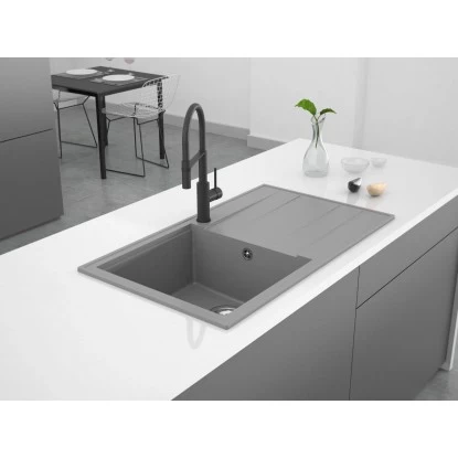 Der verwendete Granitverbundwerkstoff begeistert mit einer natürlichen Granit-Optik. Durch die Farbgestaltung in Grau harmoniert die Spüle ideal mit ihrer Natursteinarbeitsfläche. Zu den Materialeigenschaften gehören eine hohe Robustheit sowie Stoßfestigkeit. Zudem ist die Einbauspüle hitzebeständig, sodass auch heiße Kochtöpfe problemlos abgestellt werden können. Darüber hinaus lässt sie sich mühelos und schnell reinigen. Es ist wichtig, dass bei der Reinigung von Granitspülen keine chemischen Reinigungsmittel mit ätzenden Eigenschaften, z. B. Chlor, oder Milch mit scharfen abrasiven Bestandteilen zu verwenden. Für die perfekte Pflege und Reinigung der Spüle empfehlen wir den Reiniger und Pflegemittel von Miló, welche separat erhältlich sind.