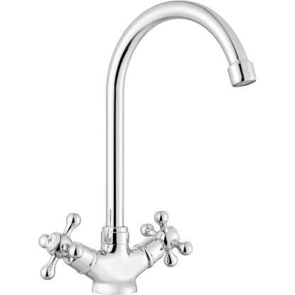 Die schöne OBI Deco-Line Zweigriff-Küchenarmatur aus der Serie Sil lässt Ihre heimische Küche im neuen Glanz erstrahlen. Sie ist dank ihres verspielten, aber edlen Designs und der kreuzförmigen Griffe ein besonderer Hingucker.