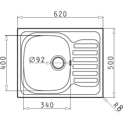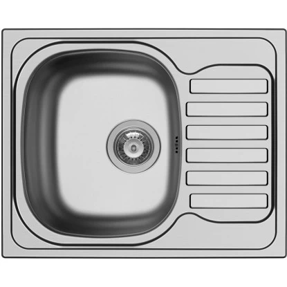 Die klassische Einbauspüle Derby 62 cm x 50 cm von Pyramis ist aus glattem Edelstahl gefertigt und eignet sich perfekt für moderne, junge Küchen. Dank ihrer kompakten Außenmaße und der kleinen Abtropffläche nimmt sie nur wenig Platz auf der Arbeitsplatte ein und passt bereits in Unterschränke ab 45 cm. Die Spüle ist mit einem manuellen Siebkorbventil (92 mm/3 1/2″) und einem Überlauf im Becken ausgestattet.