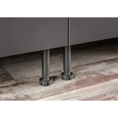 Das Respekta Buffet mit Mikrowelle zu Küchenzeile Marleen ist in verschiedenen Farben erhältlich und schafft durch den Materialmix von Elementen in Holz- und Griffleisten in Aluminiumoptik ein modernes Design. Die Schränke bieten Ihnen viel Stauraum und schließen dank der Soft Close Funktion besonders geräuscharm. Unebenheiten im Boden gleichen Sie mit den höhenverstellbaren Füßen ganz einfach aus.