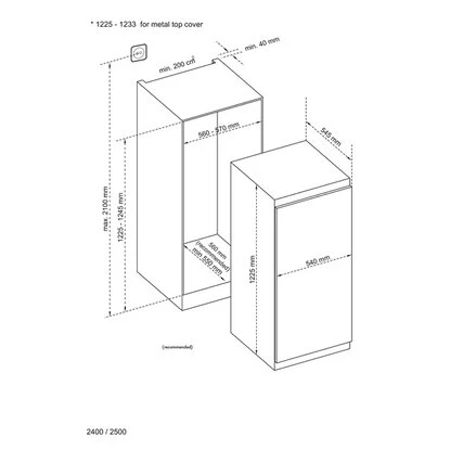 Einbaumaße (H x B x T) 123 x 56 x 54 cm