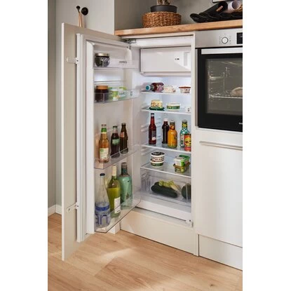 Der Respekta Einbaukühlschrank mit Gefrierfach Olavi KS122.4 zeichnet sich durch Energieeffizienzklasse E aus und bietet mit einem Gesamtnutzinhalt von 187 l ausreichend Platz für die optimale Lagerung Ihrer Lebensmittel.