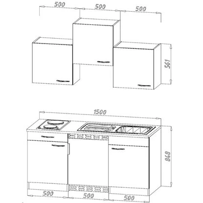 Die Respekta Küchenzeile KB150EYSC besteht aus (H x B x T):