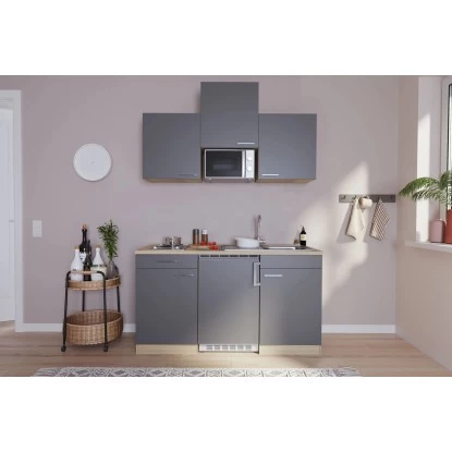 Respekta Küchenzeile KB150WGMI 150 Cm Grau-Weiß Glänzend