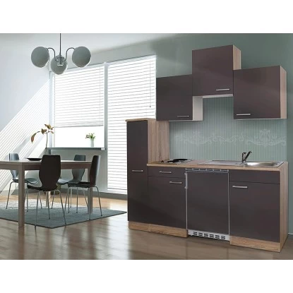 Die Respekta Küchenzeile KB180ESGC ist die ideale Küche für Single- oder Studentenwohnungen. Der moderne Eiche Sägerau Korpus in Kombination mit den Frontfarben Grau, Weiß, Rot oder Schwarz bilden ein stimmiges individuelles Farbkonzept für Ihre Küche. Zudem verfügt die Küchenzeile über eine Gesamtbreite von 180 cm und lässt sich je nach Belieben wechselseitig aufbauen. Der geräumige Apothekerschrank sowie die Schränke bieten viel Stauraum für Ihre Küchenutensilien. Alle Holzteile sind zerlegt und eignen sich dank einer detaillierten Aufbauanleitung zur Selbstmontage.