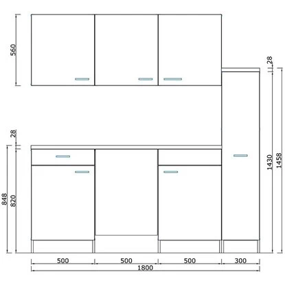 Ein funktioneller Küchenblock mit einem integrierten Unterbaukühlschrank mit 4-Sterne-Gefrierfach. Der Küchenblock weiß mit einem zeitlosen Design und einer stilvollen Farbgestaltung zu gefallen und überzeugt stets mit einem hohen Maß an Komfort. Der Küchenblock verfügt über eine Gesamtbreite von 180 cm und lässt sich ganz nach Ihren Wünschen wechselseitig aufbauen. Alle Holzteile sind zerlegt und eignen sich dank einer detaillierten Aufbauanleitung zur einfachen Selbstmontage.