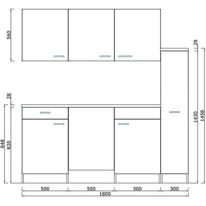 Die Respekta Küchenzeile besteht aus (H x B x T):