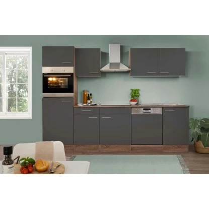 Respekta Küchenzeile Ohne E-Geräte 280 Cm Grau Seidengl.-Eiche York