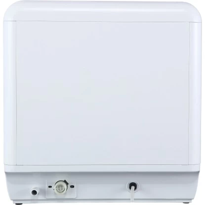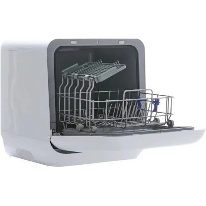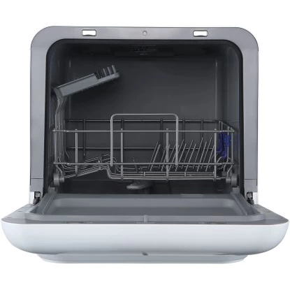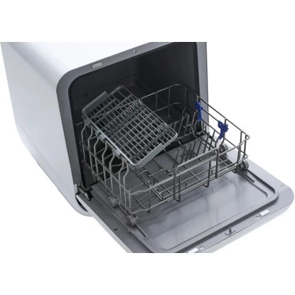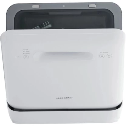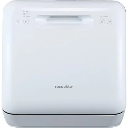 Der Respekta Mini-Einbaugeschirrspüler GSPU42 ist in jeder Küche ein echter Saubermacher. Das schlichte Design des weißen Spülgeräts passt in jede Küche und die Breite von 42 cm ist ideal für kleine Küchen – ob eingebaut im 50 cm Unterschrank oder als Tischgeschirrspüler. Er ist ideal für ein 1 – 2 Personen Haushalt. Der Mini-Geschirrspüer hat drei Programme: Schnell, Intensiv (beseitigt hartnäckige Verschmutzungen) und Eco (spart Wasser und Energie (nur 5 L pro Zyklus)). Es hat eine Geräuschemission von max. 58 dB. Der kleine Standspüler hat eine Extra-Trocken-Funktion, ein Touch-Control Bedienfeld und einen Überlaufschutz. Der Geschirrspüler mit Energieeffizienzklasse G verbraucht im Eco-Programm durchschnittlich 0,49 kW/h. Der Geschirrspüler enthält einen klappbaren Tellerhalter und Besteckkorb, einen 150 cm langen Ablauf- und Zulaufschlauch sowie ein 150 m langes Kabel.