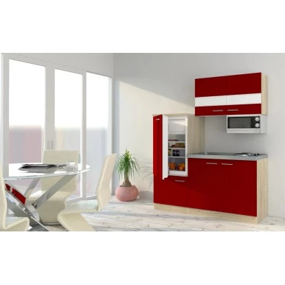 Respekta Miniküche KB160ESRMI 160 Cm Rot-Eiche Sonoma Nachbildung Mikrowelle