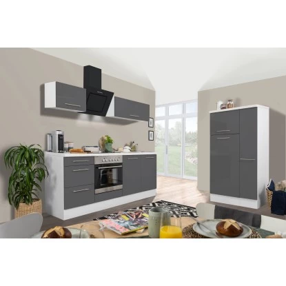 Respekta Premium Küchenzeile 300 Cm Grau Hochglanz-Weiß