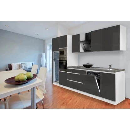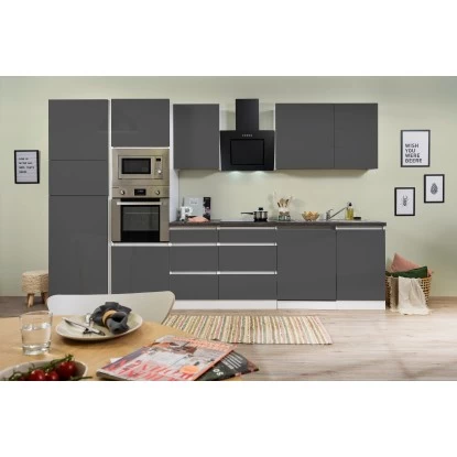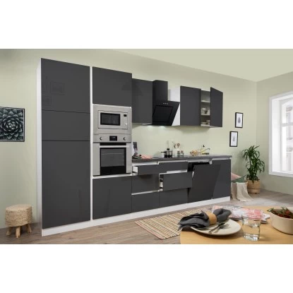 Respekta Premium Küchenzeile Grifflos 345 Cm Grau Hochglanz-Weiß