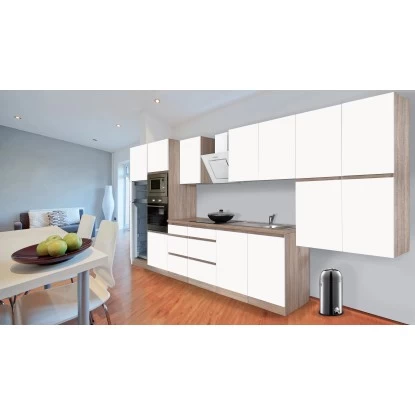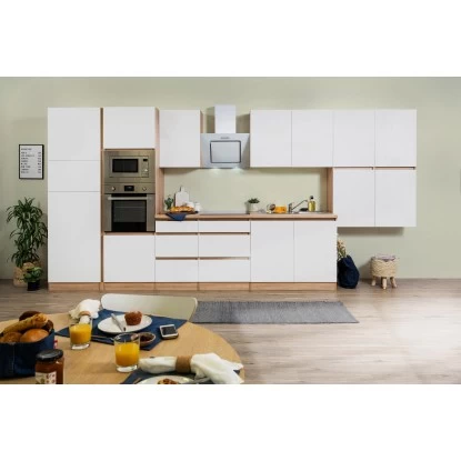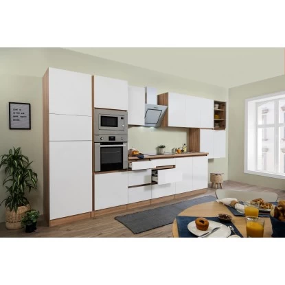 Respekta Premium Küchenzeile Grifflos 435 Cm Weiß Matt-Eiche Sägerau