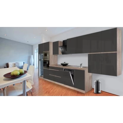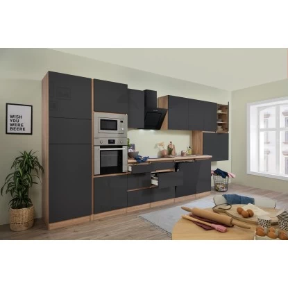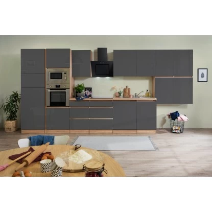 Respekta Premium Küchenzeile Grifflos 445 Cm Grau Hochglanz-Eiche Sägerau