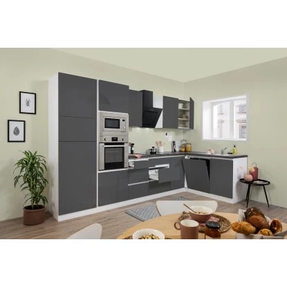 Respekta Premium Winkelküche Grifflos 345 Cm Grau Hochglanz-Weiß
