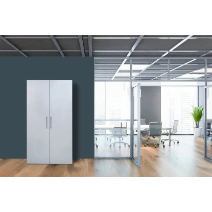 Der eingebaute Kühlschrank mit 2** Gefrierfach bietet mit einem Nutzinhalt von 81 Litern Lebensmitteln und Getränken ausreichend Stauraum. Ins Büro mitgebrachte Speisen können dort zuverlässig gekühlt, und auf dem integrierten Glaskeramik-Kochfeld mit zwei Kochzonen erwärmt werden.