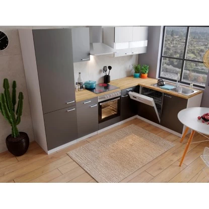 Die Respekta Winkelküche KBL280WGCGKEG ist die ideale Küche für Familien. Der matt-weiße Korpus sowie die grauen Fronten machen die Küchenzeile zu einem absoluten Blickfang. Die Arbeitsplatte in Nussbaum Butcher bildet einen schönen Abschluss.