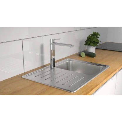 Die hochwertige Schütte Spülbeckenarmatur Vita überzeugt durch das moderne Design und setzt tolle Akzente in Ihrer Küche. Die Standarmatur mit hohem Auslauf und 360° Schwenkbereich sorgt für einen komfortablen Aktionsradius. Dank der Einhebel-Bedienung haben Sie mehr Bewegungsfreiheit am Spülbereich. Die Hochdruck-Armatur ist mit einer geräuscharmen, auswechselbaren Kartusche mit langlebigen, keramischen Dichtungen zur präzisen Regelung der Durchflussmenge und der Wassertemperatur ausgestattet. Für eine einfache Kalkentfernung sorgt die Original Cascade Mischdüse. Zudem verfügt sie über einen Kalt- und einen Warmwasseranschluss und wird inklusive zwei Flexschläuche geliefert. Strenge Qualitätskontrollen und hochwertige Materialien, die den Bestimmungen der deutschen Trinkwasserverordnung entsprechen, gewährleisten hohe Sicherheit und beste Wasserqualität. Das mitgelieferte Montageset und die leicht verständliche Montageanleitung garantieren eine schnelle und einfache Installation.