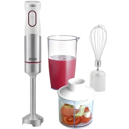 Das kraftvolle Stabmixer-Set SMS 6501 von Silva Homeline mit Turbostufe zerkleinert Kräuter für Ihr Lieblingspesto im Handumdrehen und hilft Ihnen bei der Zubereitung von vielfältigen leckeren Köstlichkeiten. Pürieren Sie Ihre Lieblingszutaten für eine leckere Suppe oder gesunden Smoothie mit nur einem Knopfdruck.