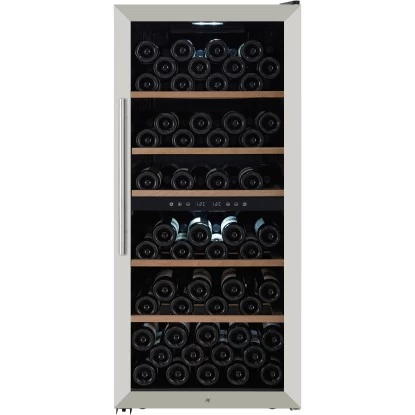 Der Silva Homeline Weintemperierschrank WKS 1-112 ist für jeden Weingenießer ein Muss! Mit seinen 233 l Nutzinhalt kann er bis zu 102 Weinflaschen aufnehmen, welche auf hochwertigen Holzeinlegeböden sicher verwahrt sind. Dank der Türe mit getöntem Isolier-Glas hat man jederzeit den Überblick über den Inhalt und die LED-Innenbeleuchtung lässt sich wahlweise ein- oder ausschalten. Die digitale Temperaturregelung: in zwei Zonen sorgt dafür, dass die edlen Tropfen egal ob nun Weiß- oder Rotwein immer perfekt temperiert sind und die höhenverstellbare Füße erleichtern das Ausrichten des Geräts an die örtlichen Gegebenheiten. Mit einer Geräuschemission von 41 dB ist der Getränkekühlschrank äußerst leise und seine schlichte Edelstahloptik fügt sich in jede Küche optimal ein.